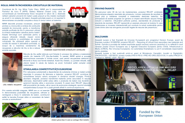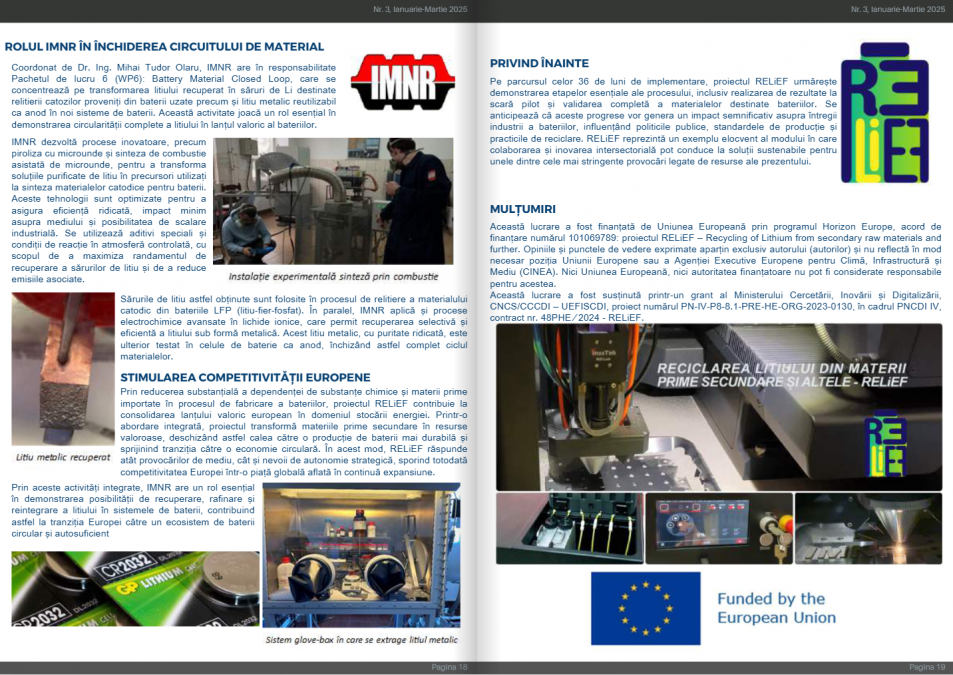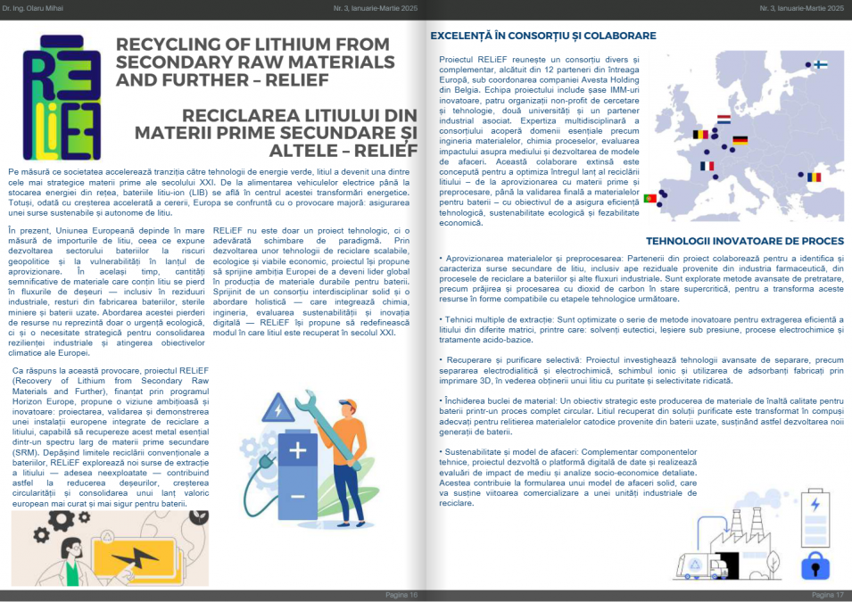 Recently, RELiEF was featured in the new issue of the Romanian National R&D Institute for Non-Ferrous and Rare Metals - IMNR, EMERGING TECHNOLOGIES IN MATERIALS ENGINEERING. A magazine dedicated to presenting scientific results, projects with real applicability and people who give meaning to the daily work in research and innovation.